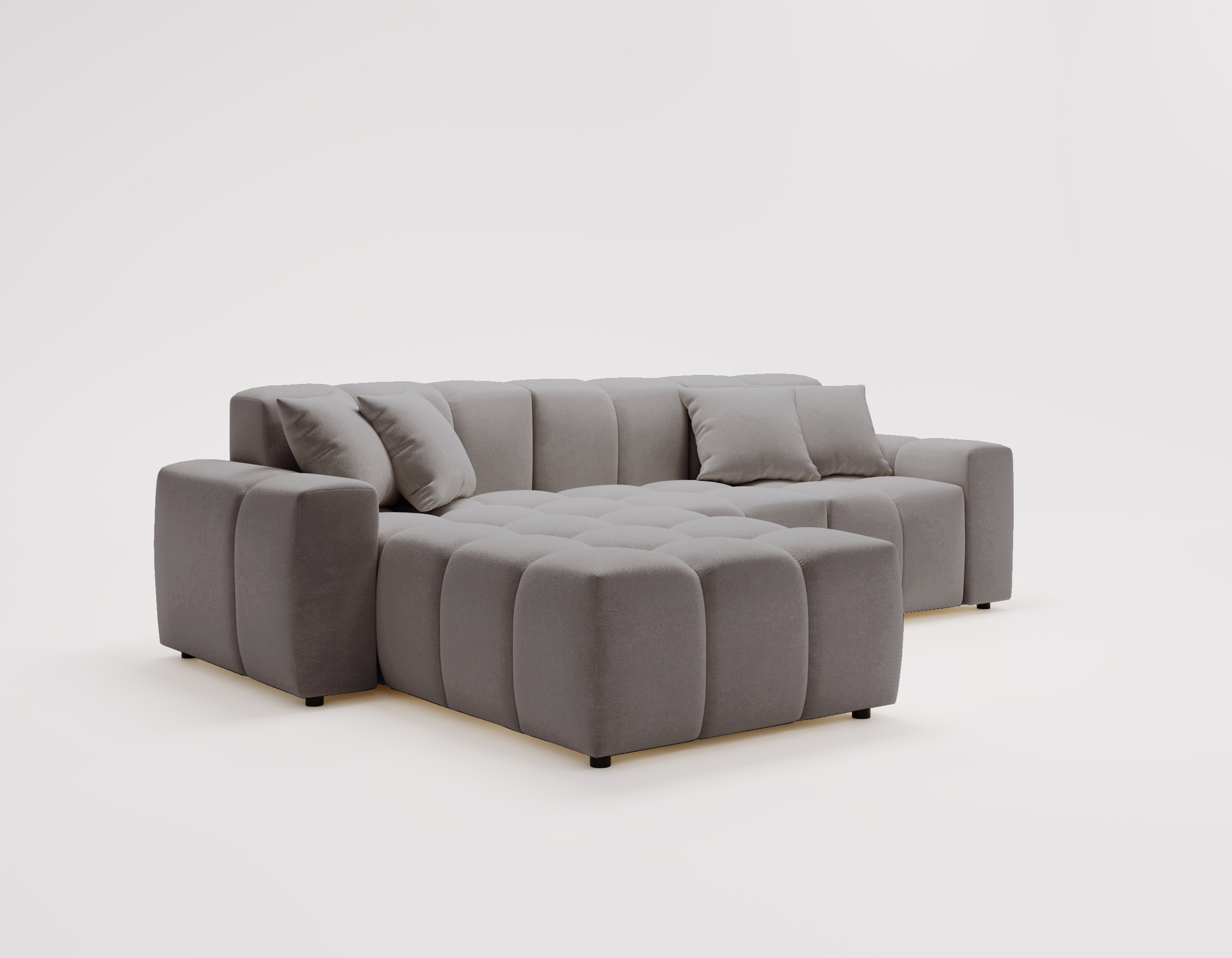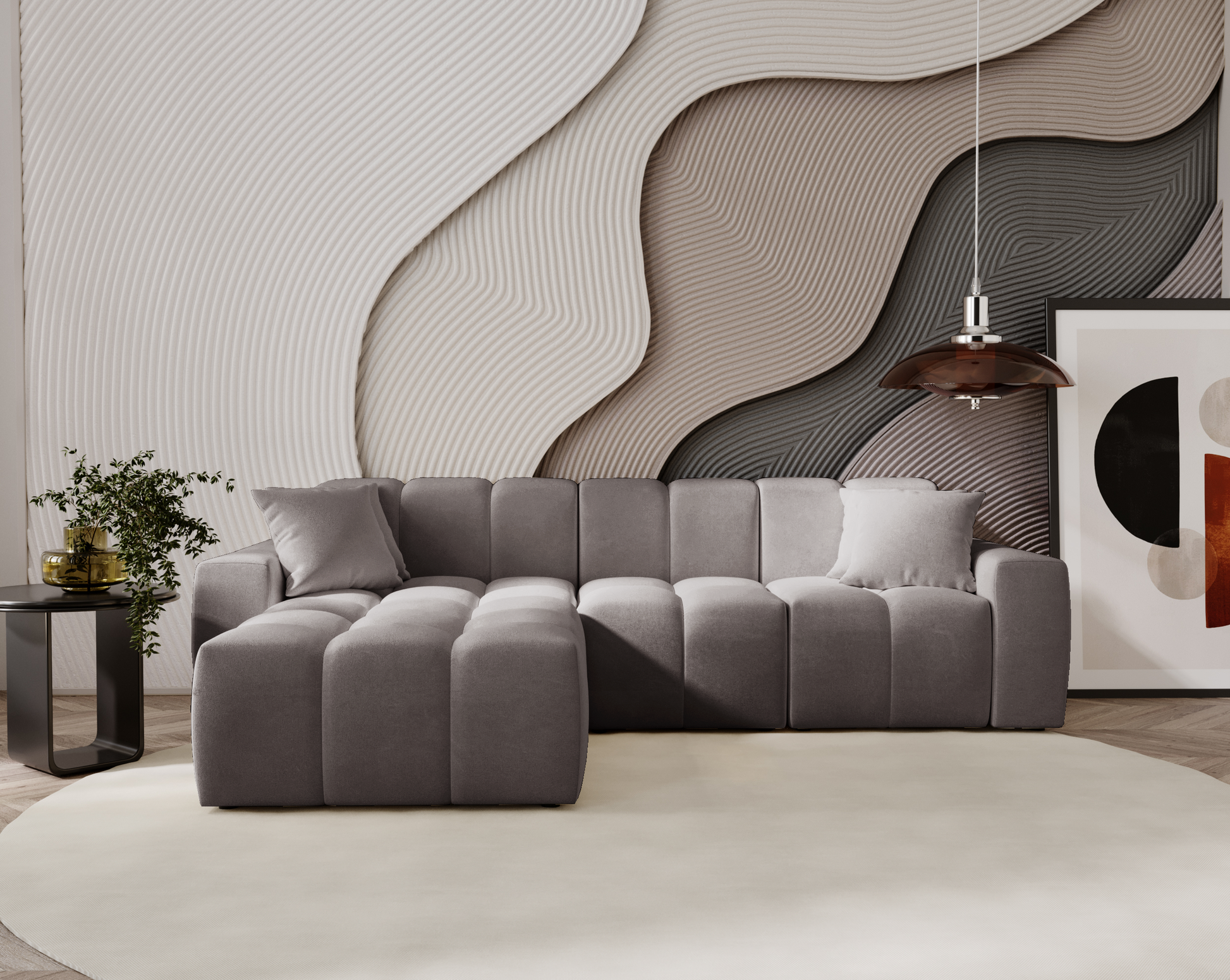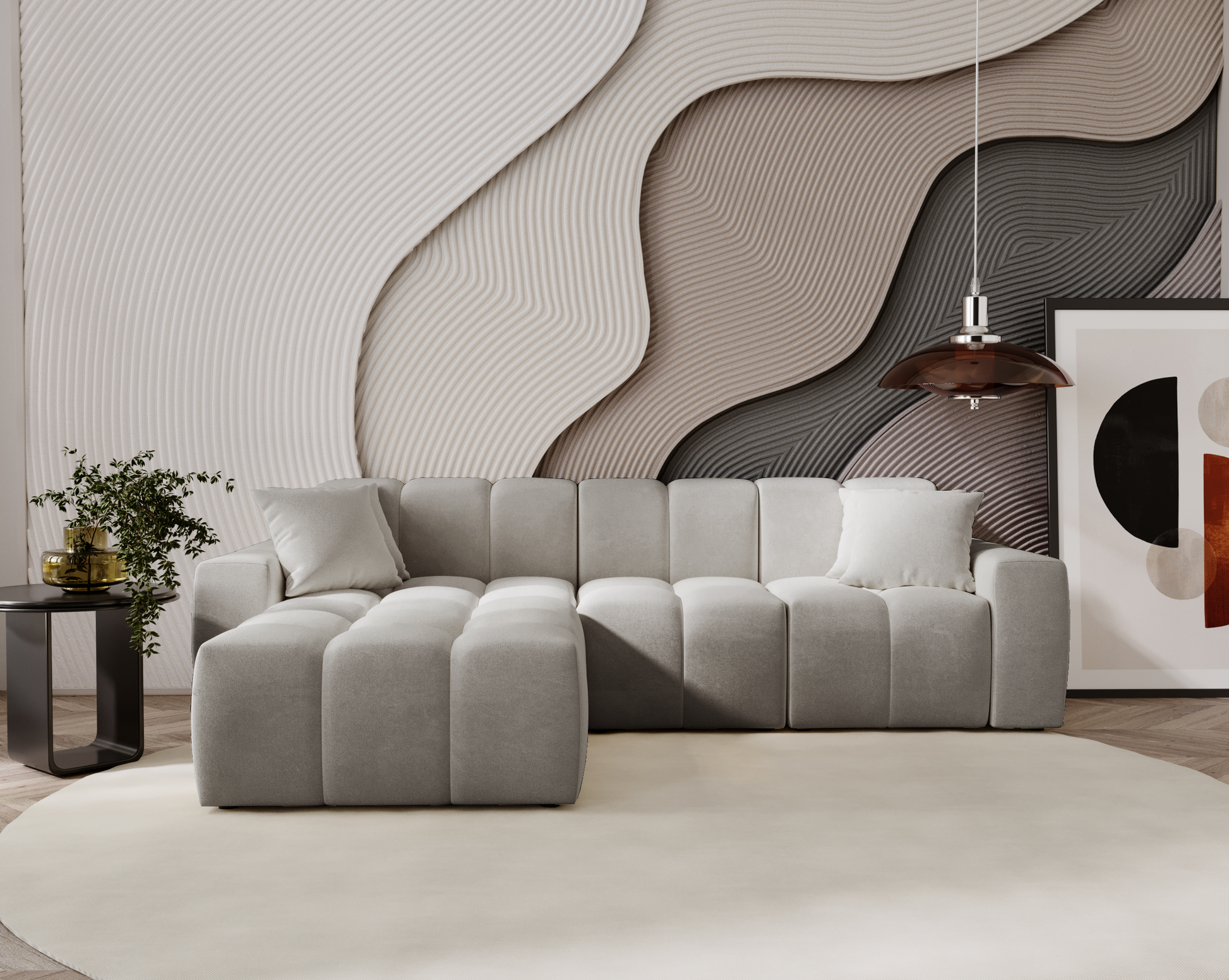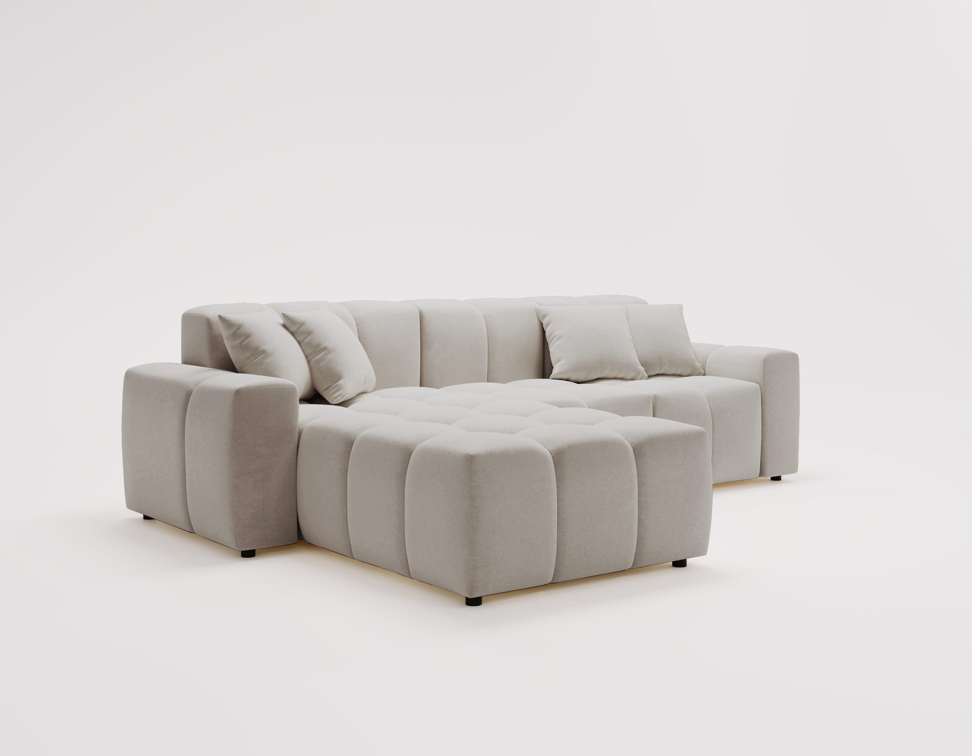 Molnet är en stilren och modern hörnsoffa som passar perfekt in i alla typer av vardagsrum. Den kännetecknas av sin minimalistiska, geometriska form samtidigt som den erbjuder en mjuk och bekväm sittupplevelse. Sitsen och ryggstödet är tillverkade av HR-skum och vågfjädrar, vilket garanterar hållbarhet och förhindrar att soffan tappar sin form över tid. Den ger maximal komfort – perfekt för dig som har höga krav på både design och funktion.