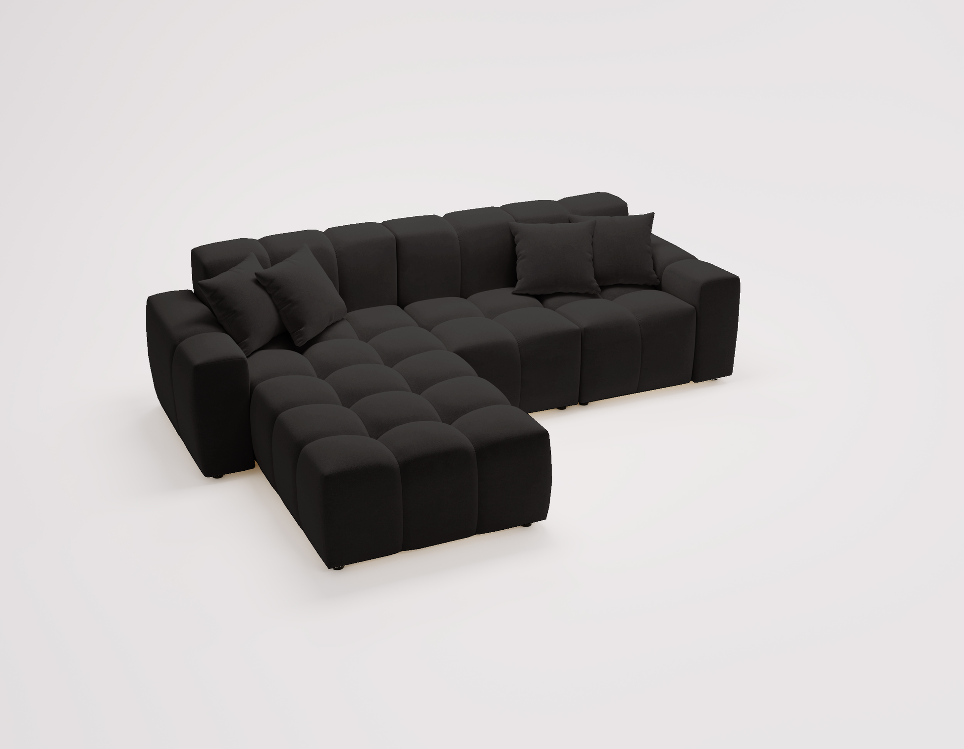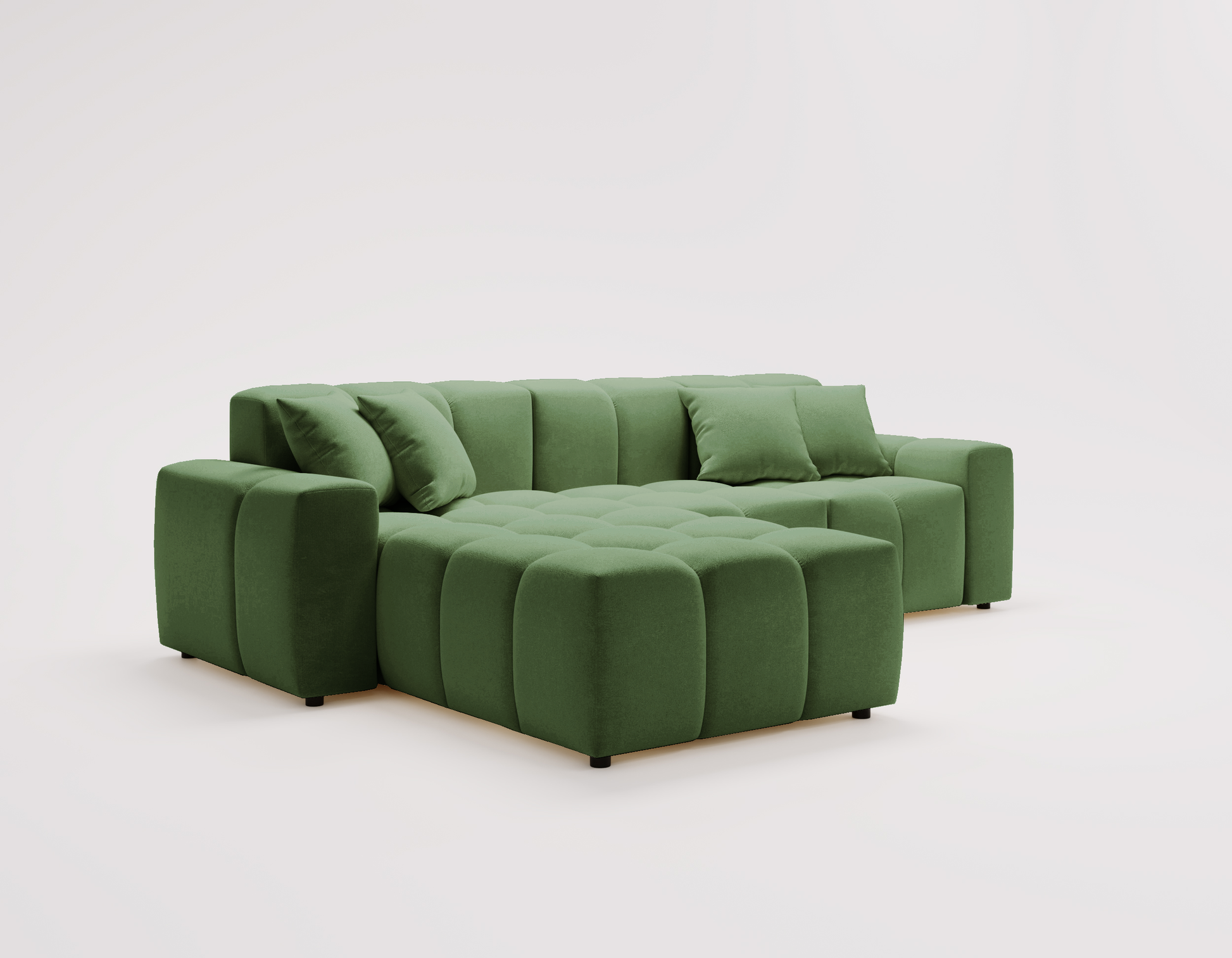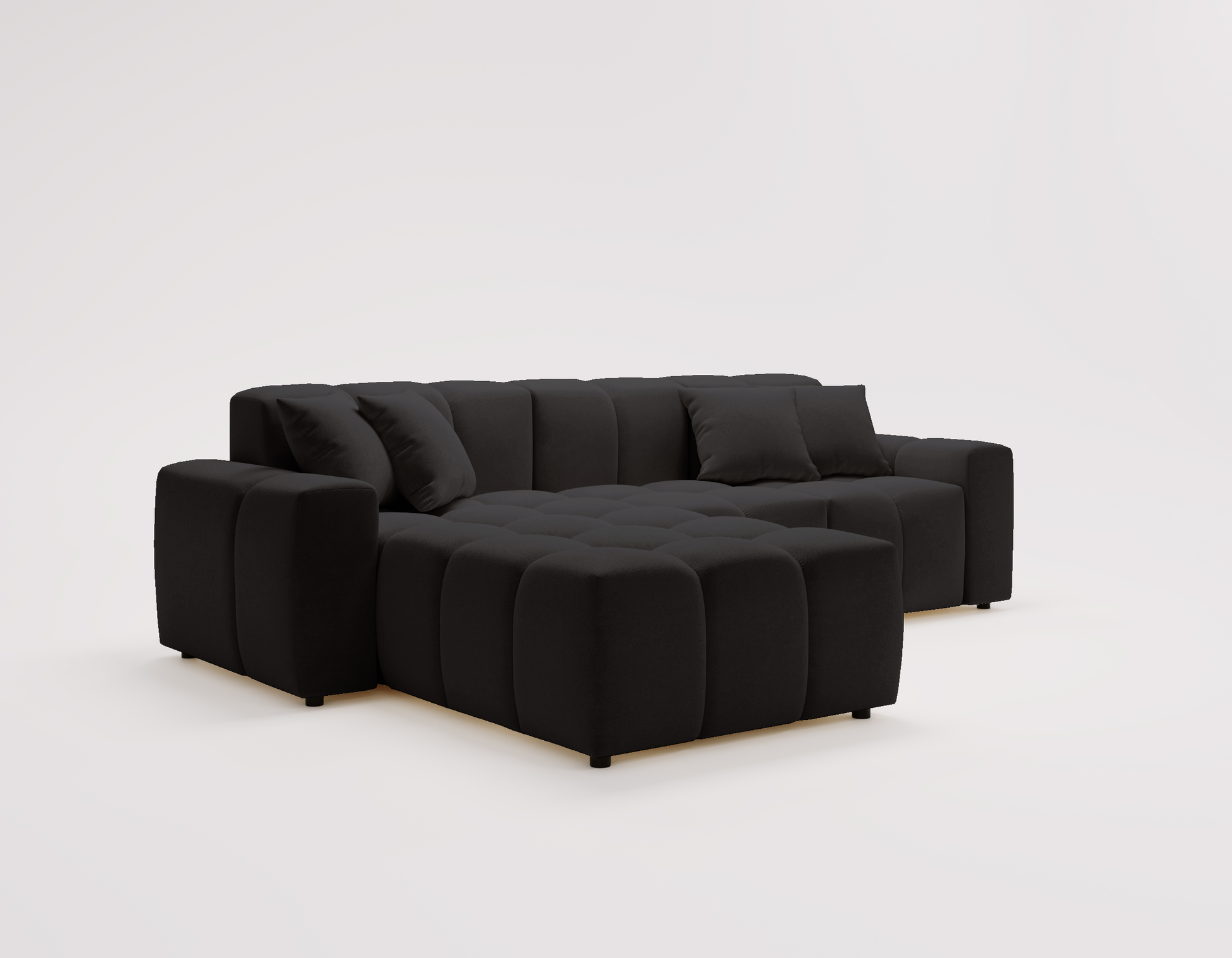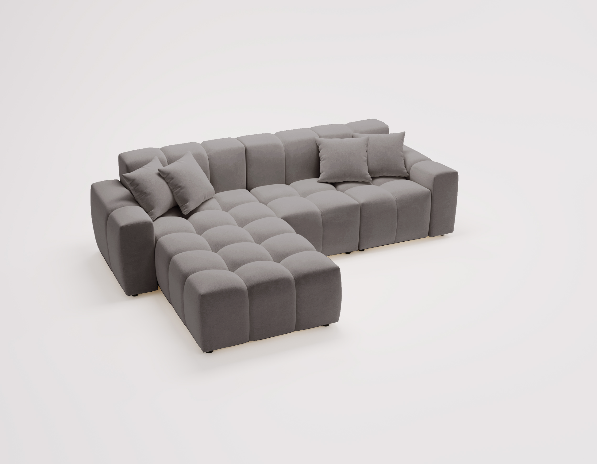 Molnet är en stilren och modern hörnsoffa som passar perfekt in i alla typer av vardagsrum. Den kännetecknas av sin minimalistiska, geometriska form samtidigt som den erbjuder en mjuk och bekväm sittupplevelse. Sitsen och ryggstödet är tillverkade av HR-skum och vågfjädrar, vilket garanterar hållbarhet och förhindrar att soffan tappar sin form över tid. Den ger maximal komfort – perfekt för dig som har höga krav på både design och funktion.