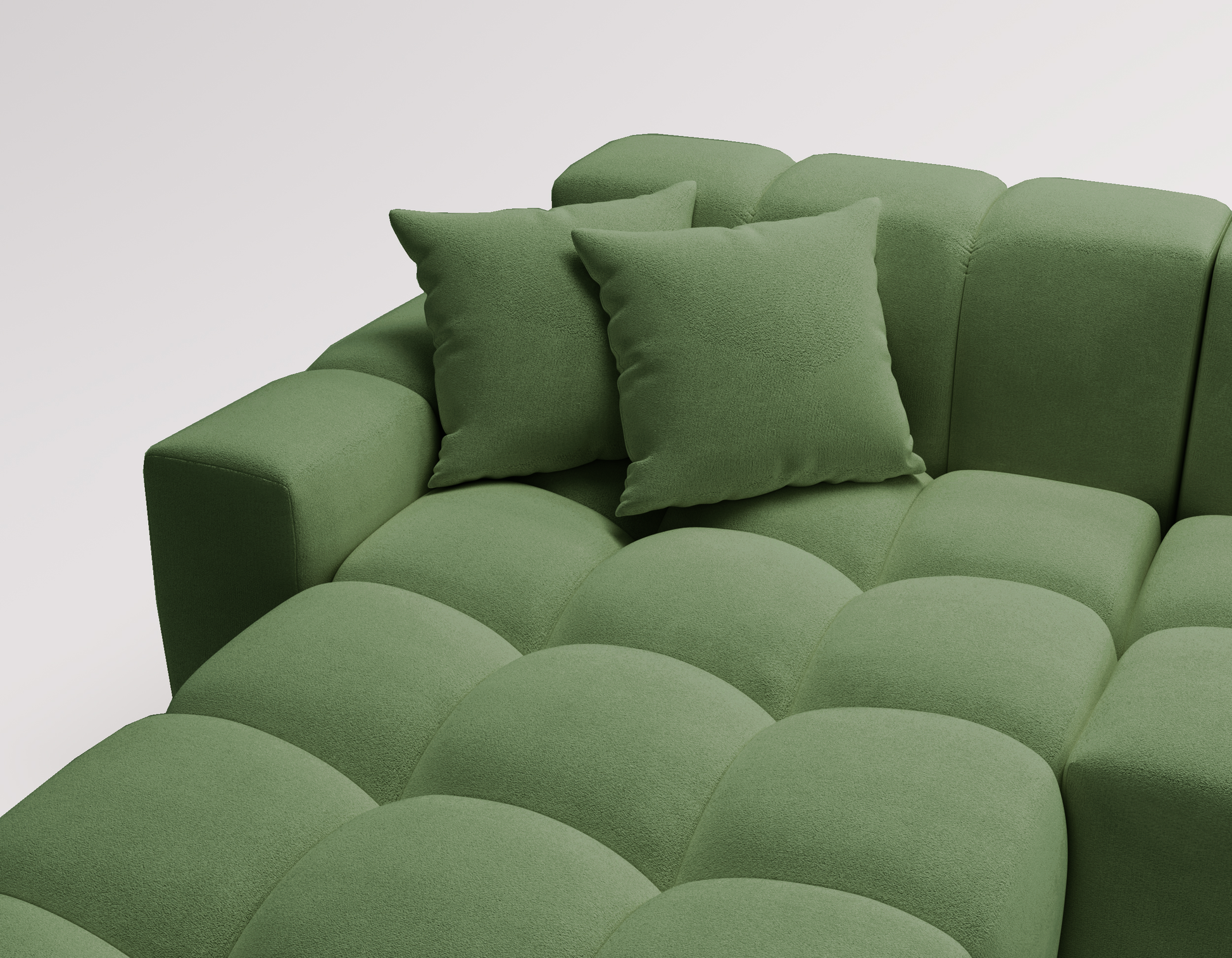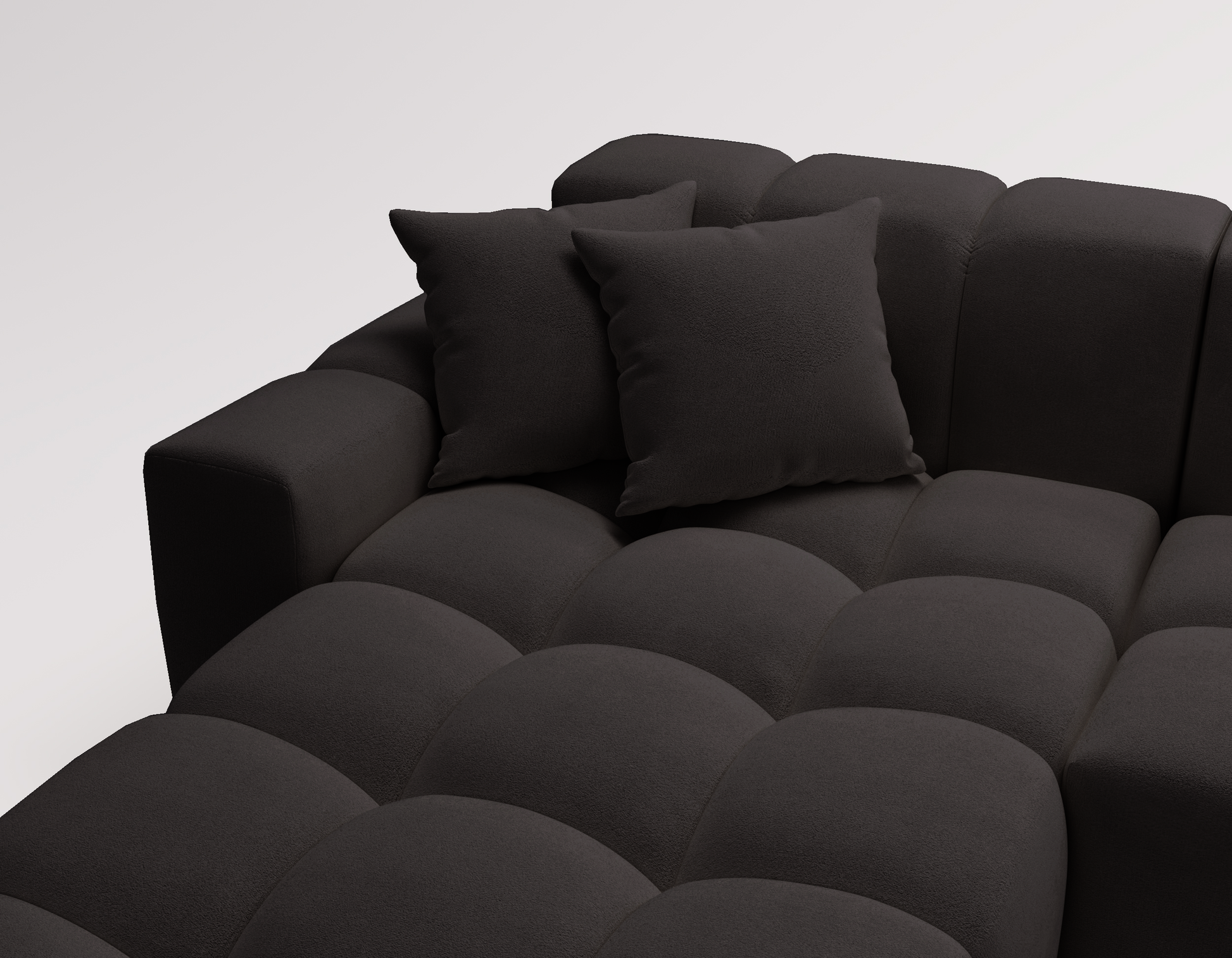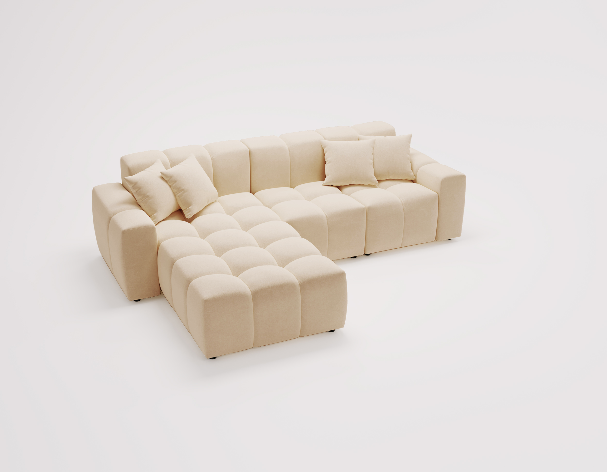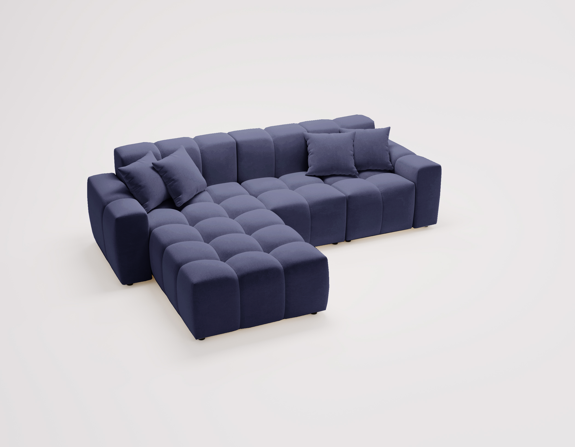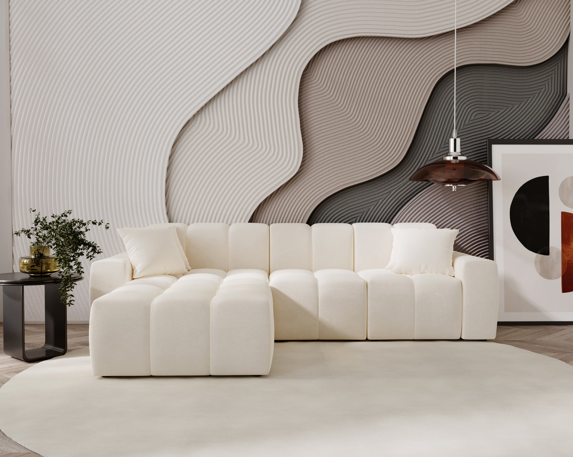 Molnet är en stilren och modern hörnsoffa som passar perfekt in i alla typer av vardagsrum. Den kännetecknas av sin minimalistiska, geometriska form samtidigt som den erbjuder en mjuk och bekväm sittupplevelse. Sitsen och ryggstödet är tillverkade av HR-skum och vågfjädrar, vilket garanterar hållbarhet och förhindrar att soffan tappar sin form över tid. Den ger maximal komfort – perfekt för dig som har höga krav på både design och funktion.