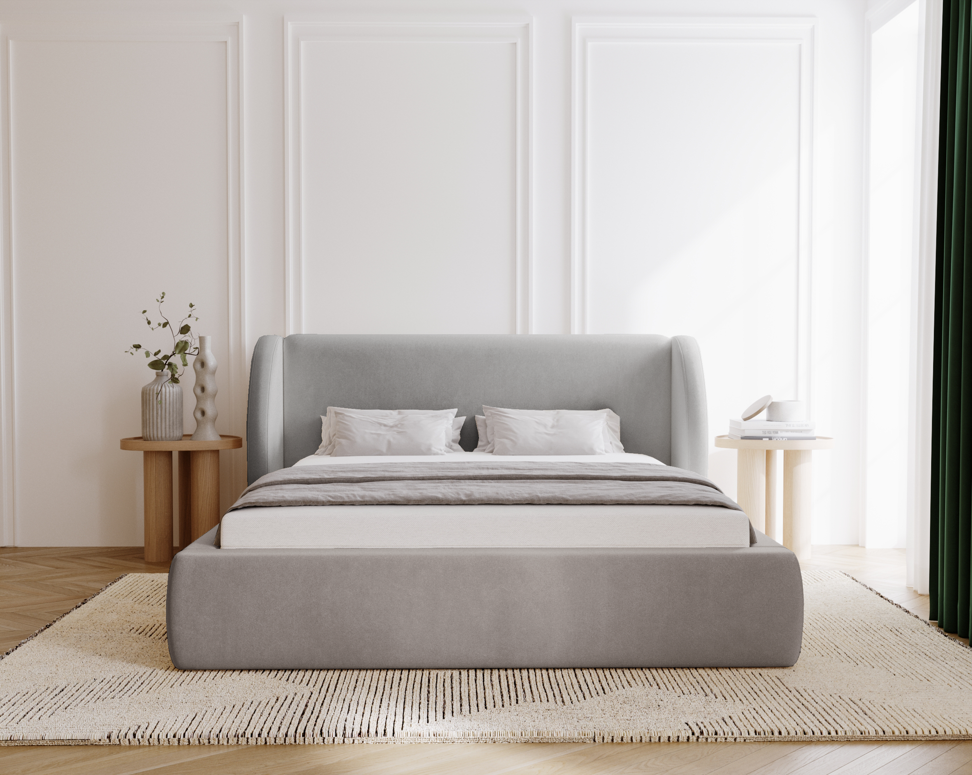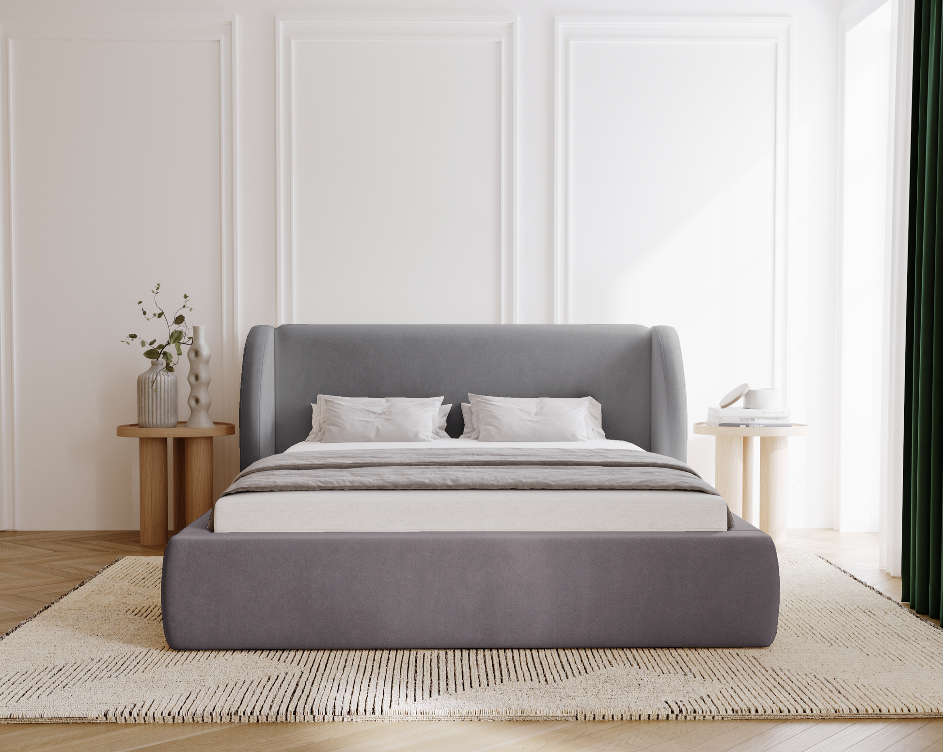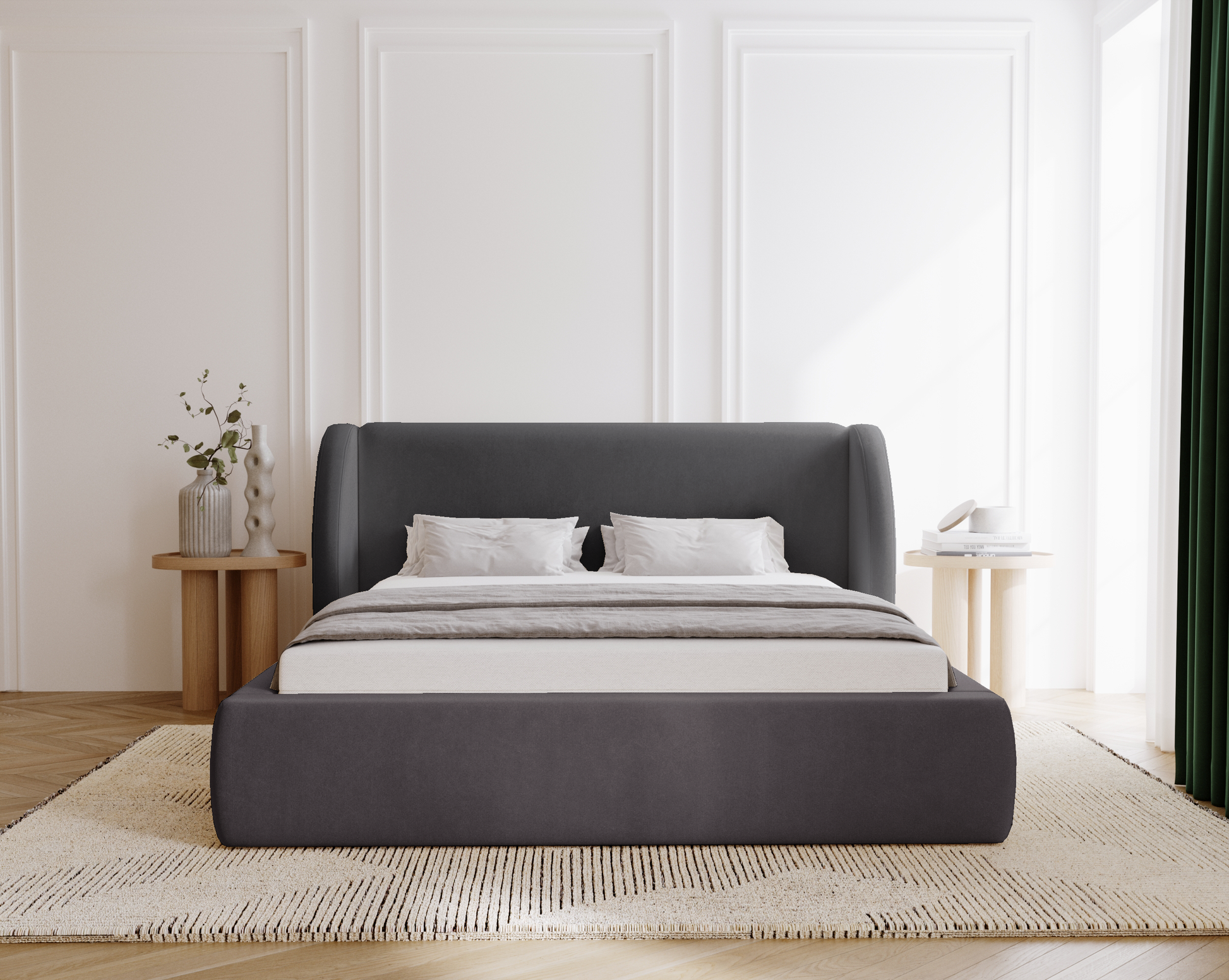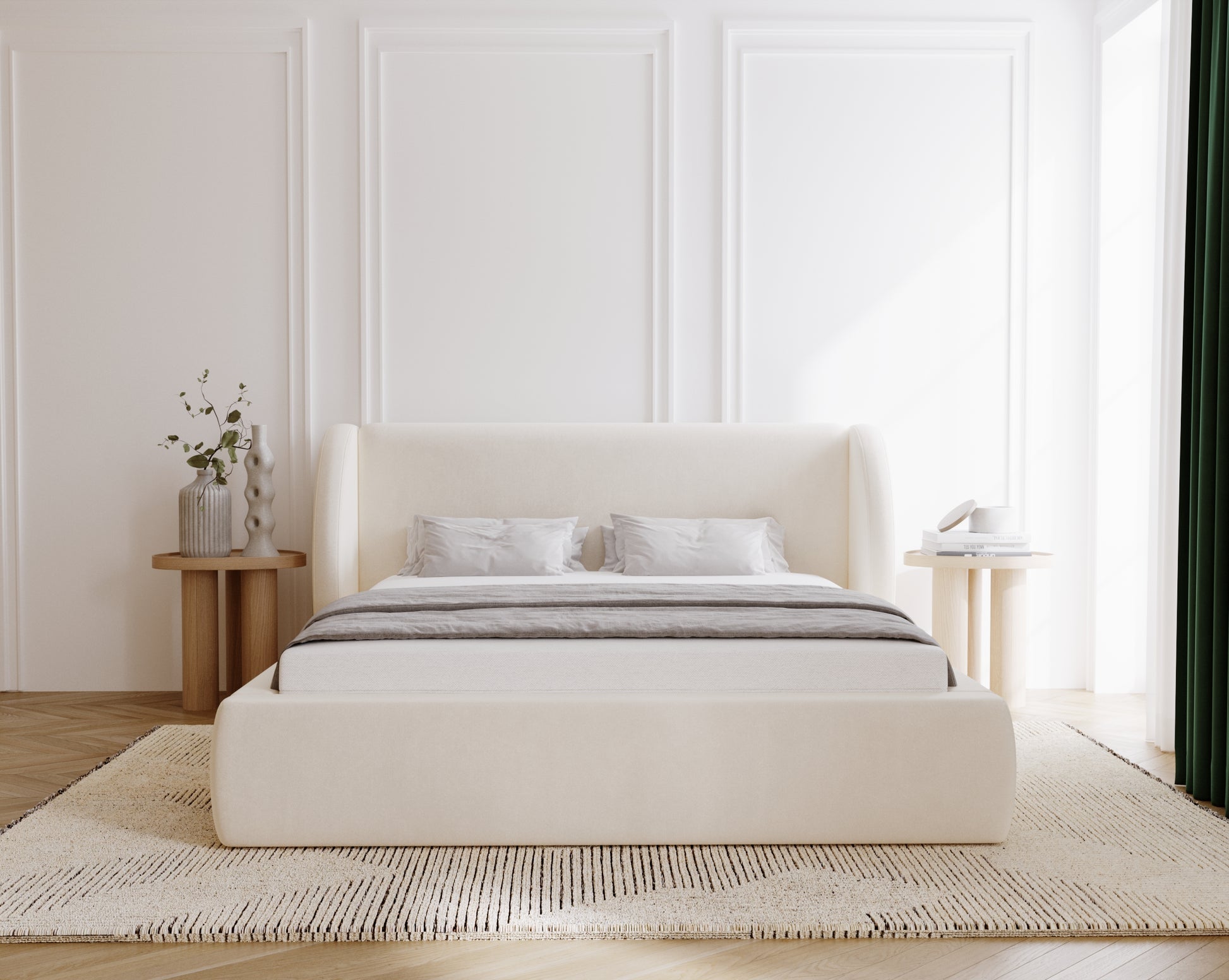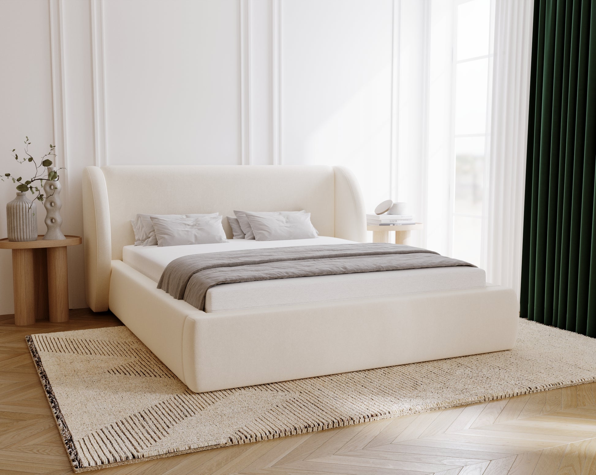 Med sin välvda elegans och genomtänkta funktion är Svalna en säng som både fångar ögat och ger kroppen vila. En plats där varje kväll känns som början på något stilla och vackert.