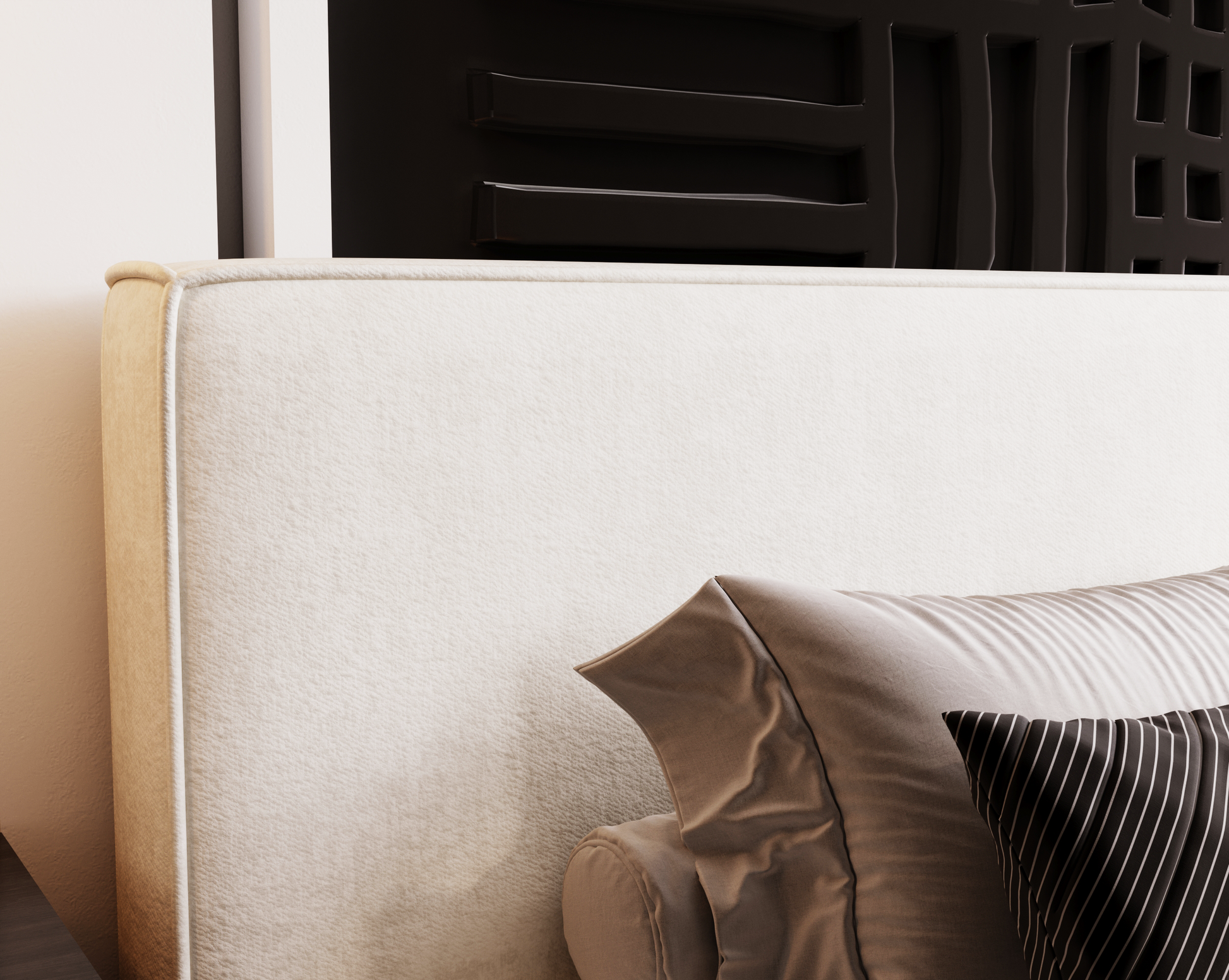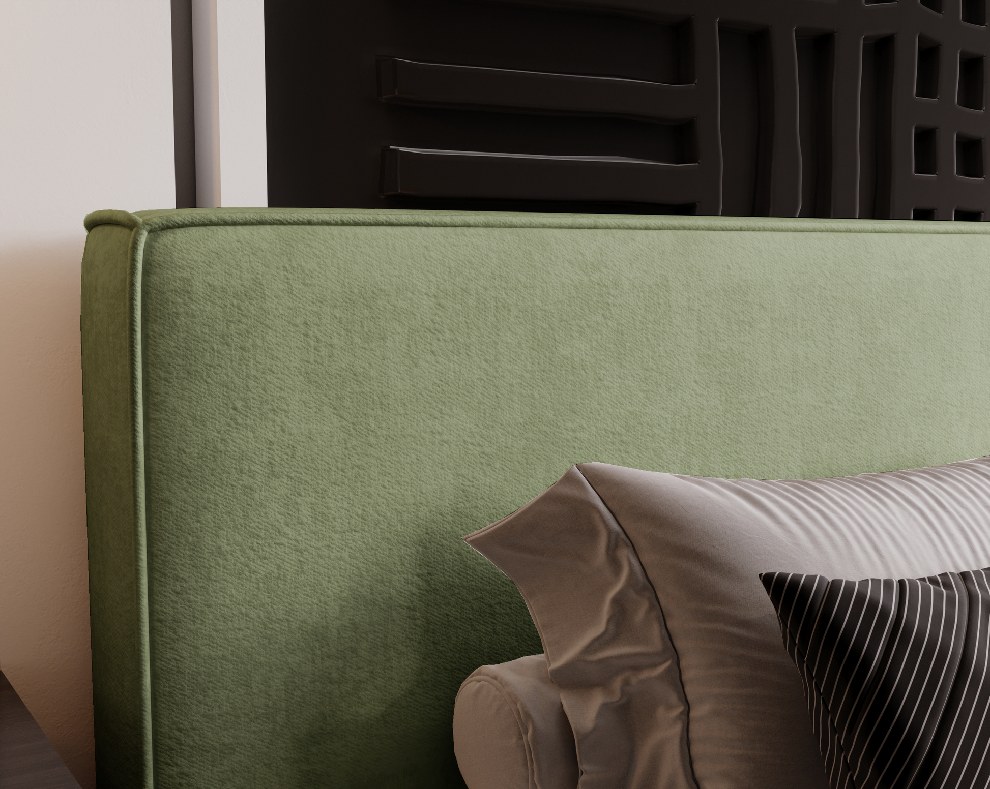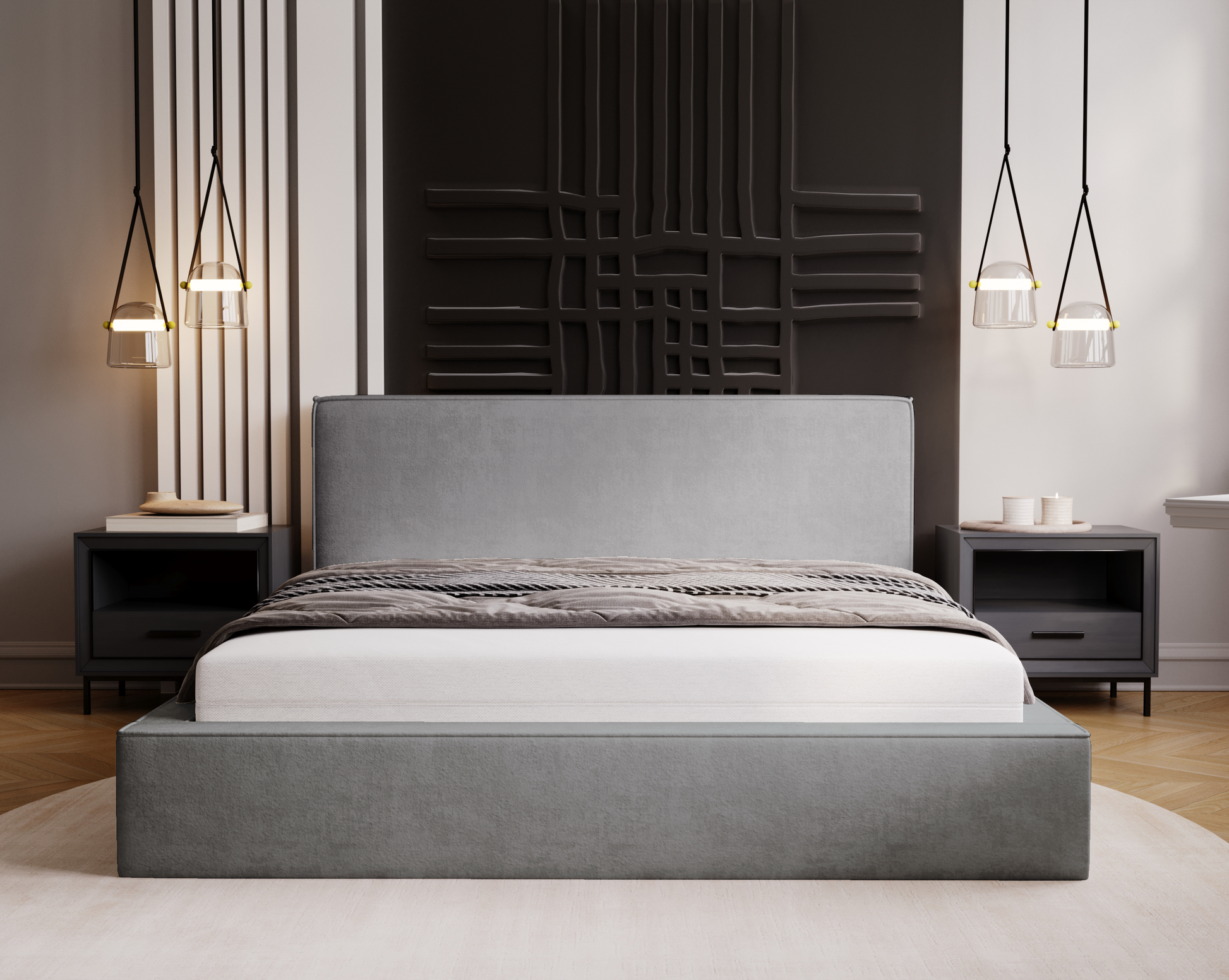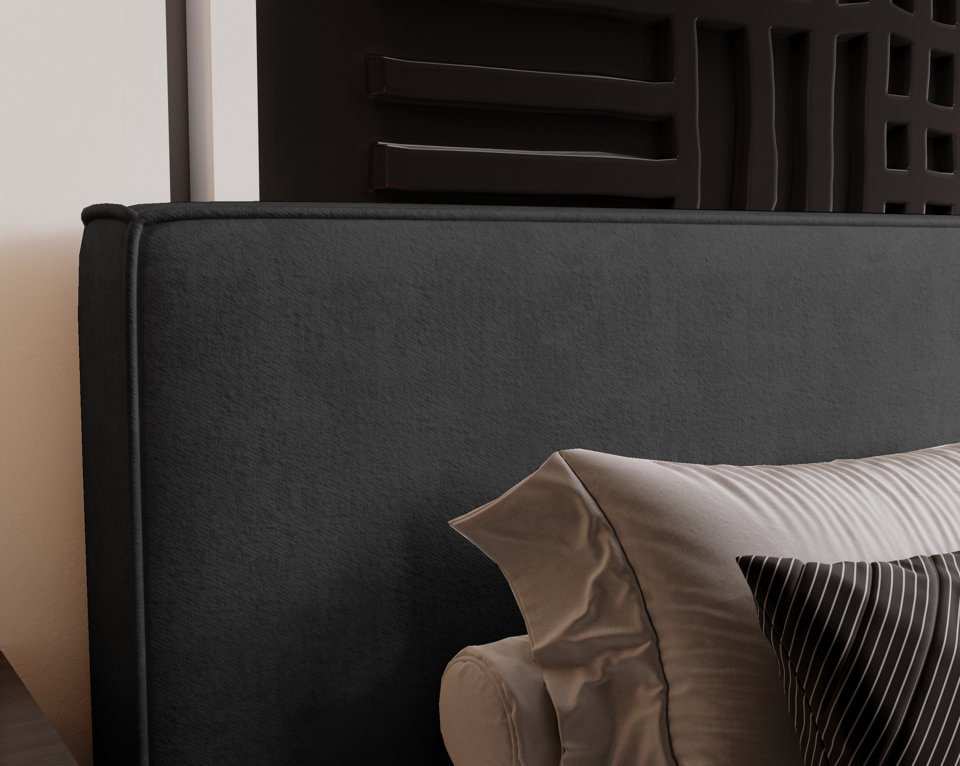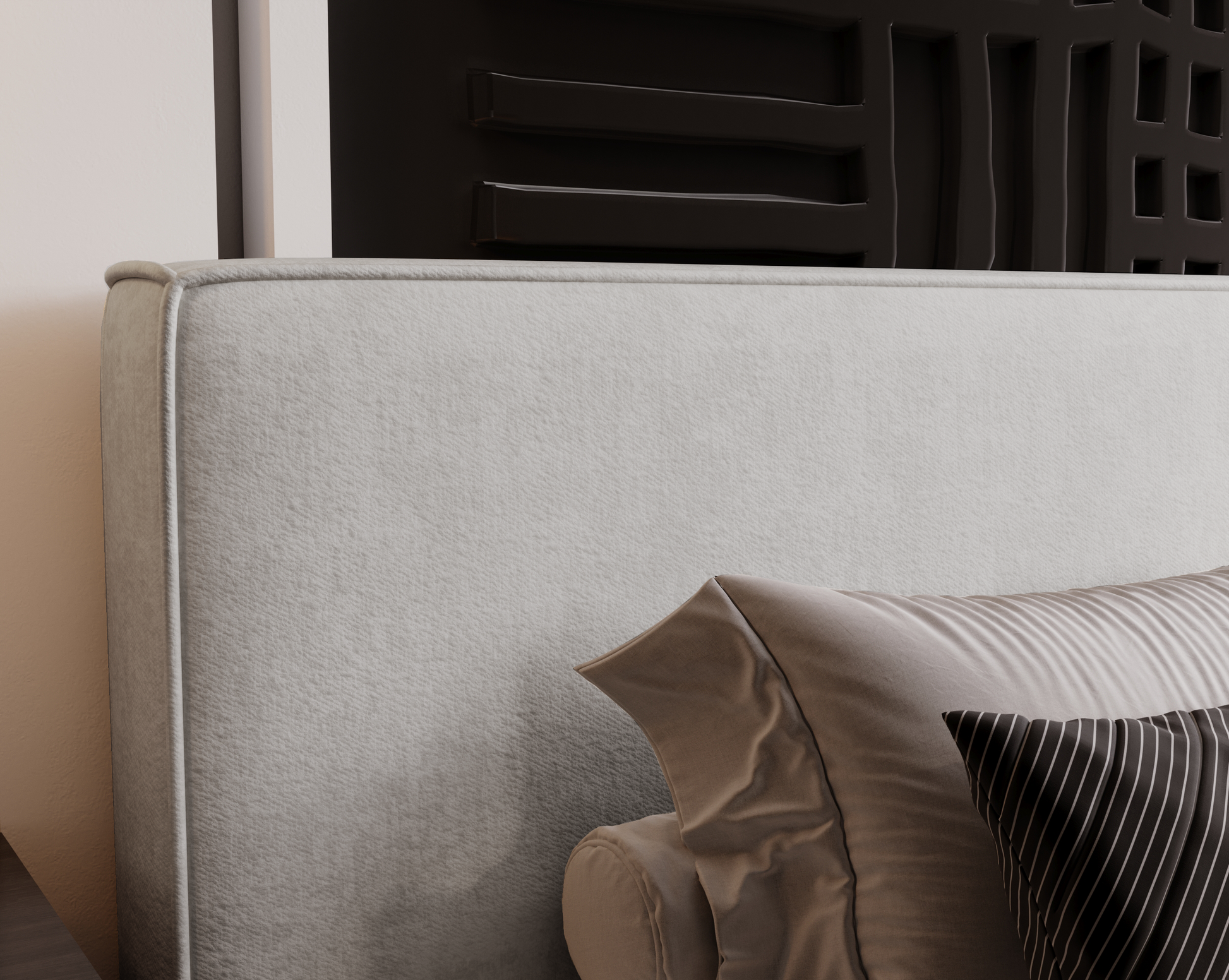 Den lätt vinklade gaveln ger ett skönt stöd för rygg och nacke när du vill luta dig tillbaka med en bok eller film innan läggdags. Sängen är klädd i ett mjukt tyg och generöst stoppad med tjock skum för maximal komfort och en lyxig känsla.